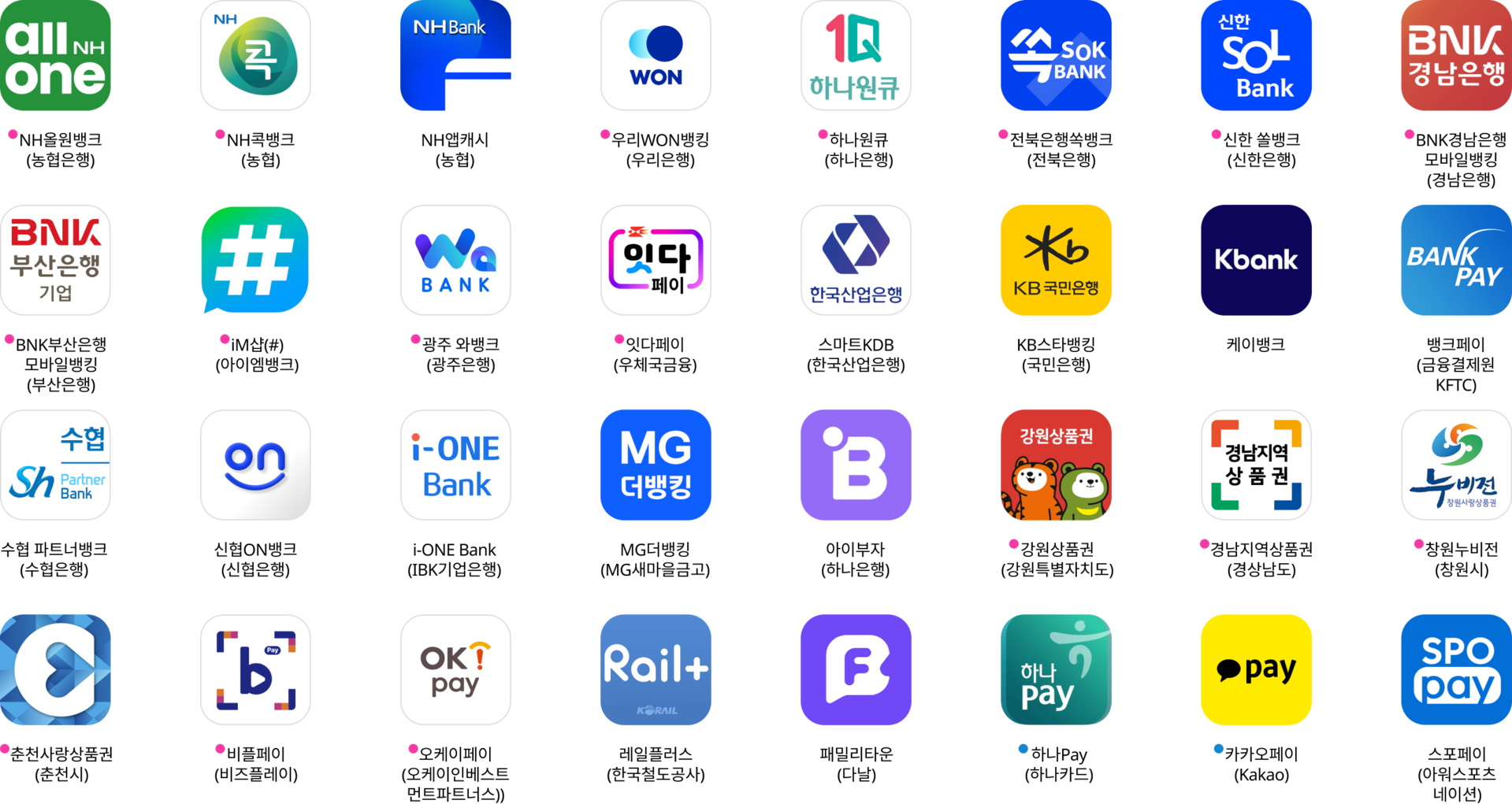 45개의 은행, 전자금융업자 등 참여기관과 QR코드를 활용한 개방된 결제인프라를 통해 직불, 선불, 후불, 법인, 해외 온라인 등 다양한 서비스를 제공합니다.
